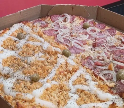 Pizza fresquinha, saborosa, chegou rapidamente e estava quentinha!